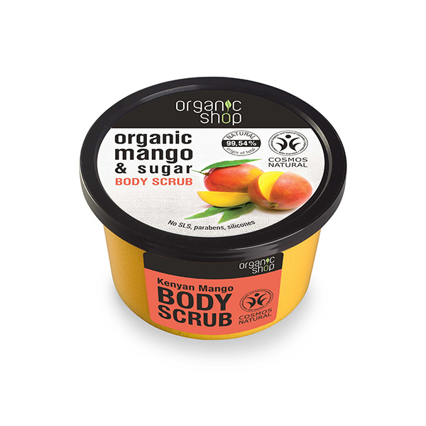 Este exfoliante corporal de aroma afrutado con extracto de mango orgánico y azúcar natural exfolia suntuosamente y renueva la piel, dándole suavidad, sedosidad y un brillo saludable.