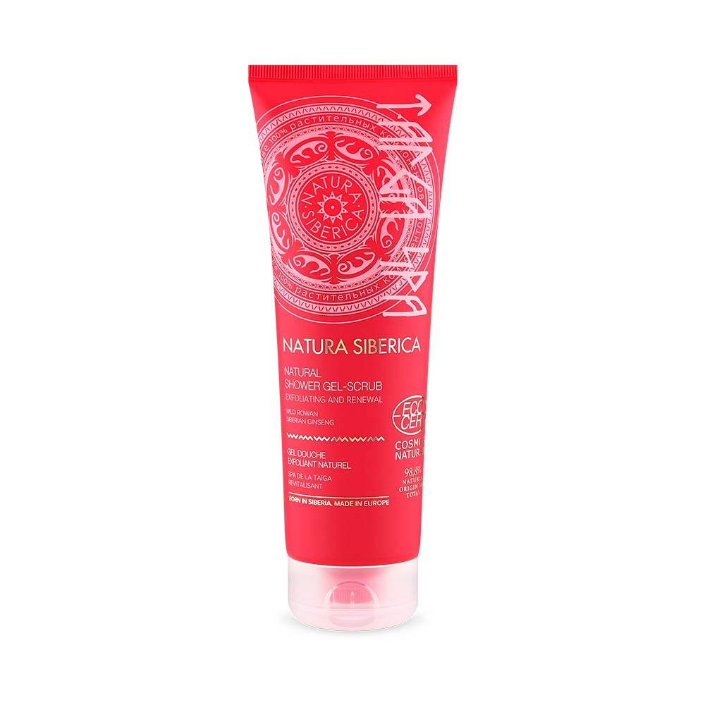 Aqua, Sodium Coco-Sulfate, Glycerin, Decyl Glucoside, Prunus Armeniaca Seed Powder*, Xanthan Gum, Sorbus Aucuparia Fruit Extract WH*, Eleutherococcus Senticosus Extract WH*, Panax Ginseng Root Extract*, Schizandra Chinensis Extract WH*, Rosa Canina Fruit Extract*, Larix Sibirica Needle ExtractWH*, Melilotus Albus Flower/Leaf/Stem Extract*, Urtica Dioica Extract*, Pinus Sibirica Seed OilWH*, Dehydroacetic Acid, Benzyl Alcohol, Sodium Benzoate, Potassium Sorbate, Citric Acid, Parfum.