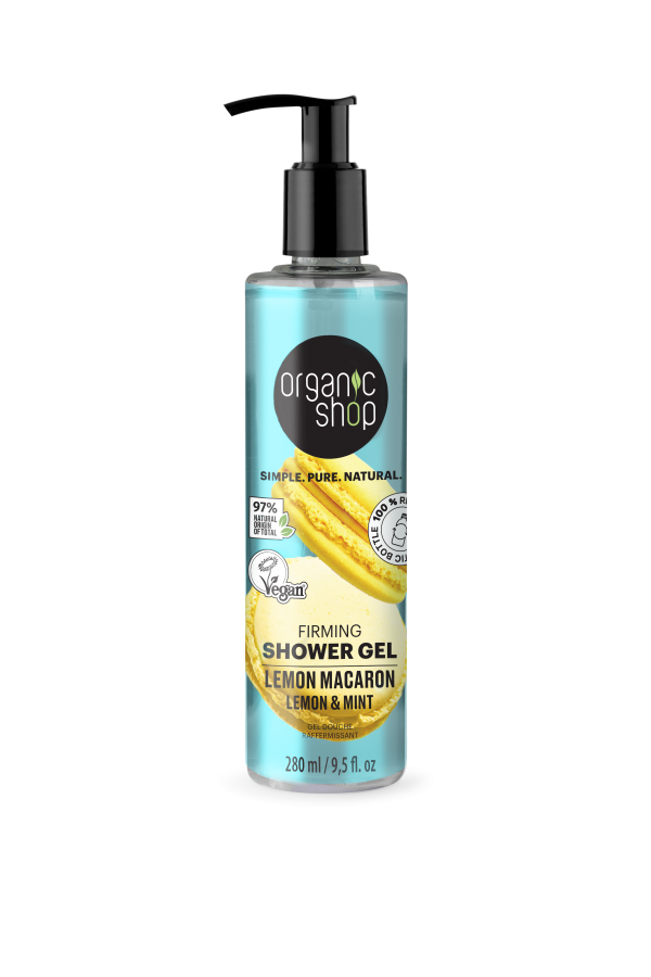 ¡Disfruta del aroma más increíblemente delicioso con nuestro Gel de ducha reafirmante de macaron de limón, que te dejará una piel firme y revitalizada gracias a los aceites esenciales de limón y menta orgánica!