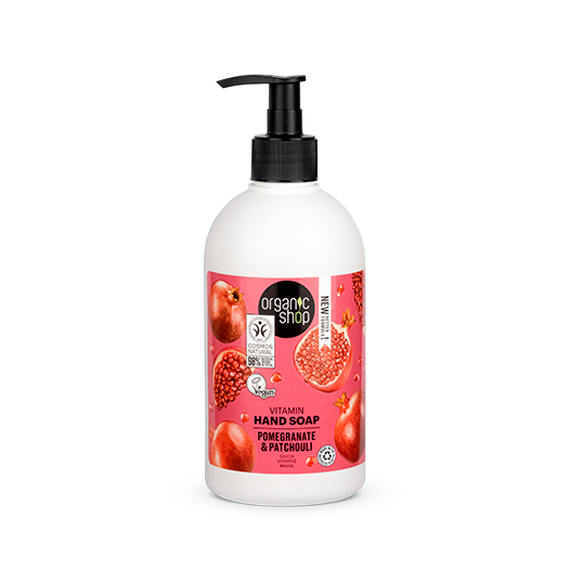 Este jabón de manos de vitaminas está elaborado para limpiar e hidratar las manos. Está lleno de extracto de granada orgánica y aceite de pachuli, que nutren las manos con vitaminas dejándolas suaves y sedosas.